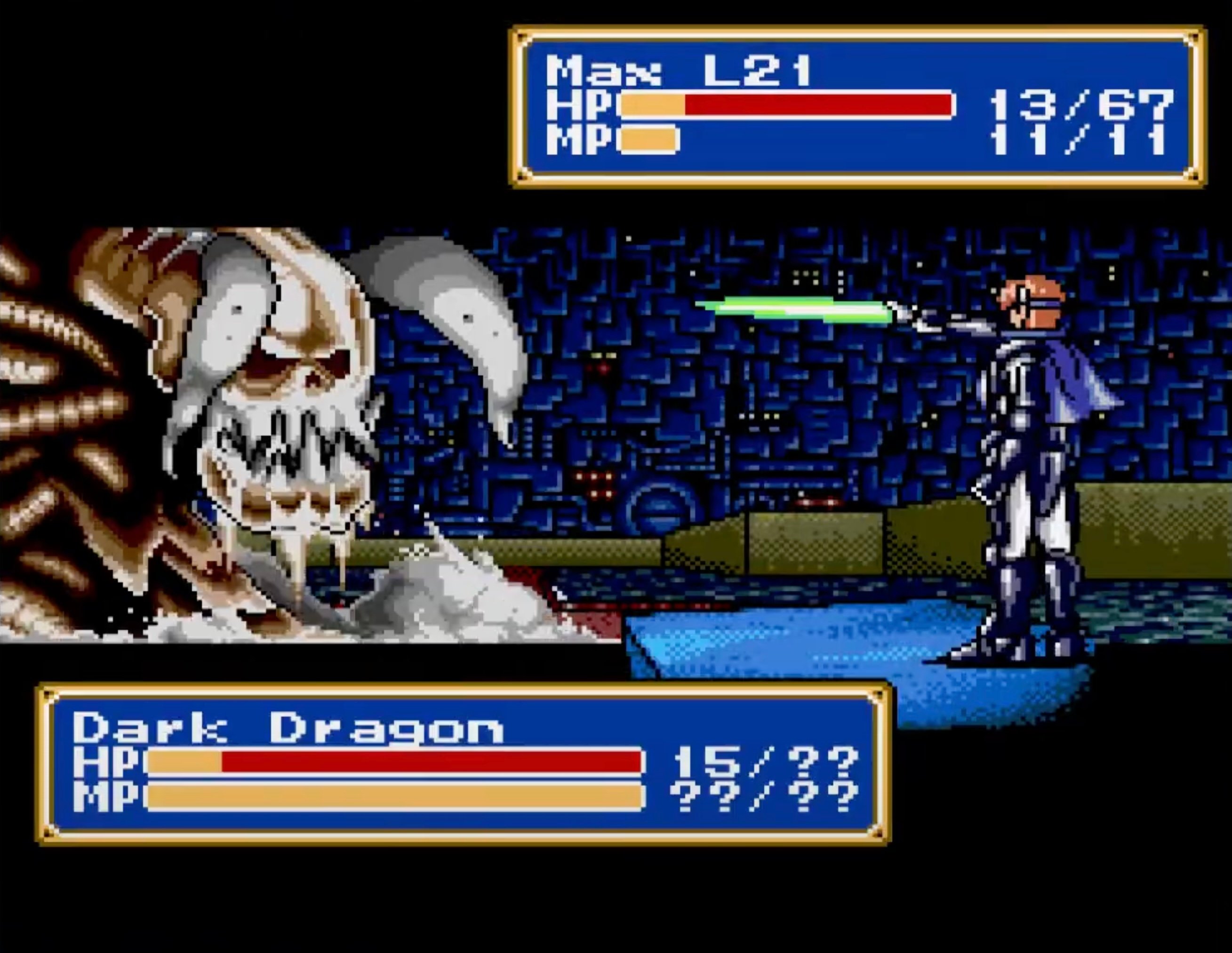 Shining Force is incredible. It’s hard for me to put into words why I like this game so much. It reminds me a lot of the early Pokémon games in the way that you play through with mostly a small-ish party, but there’s still plenty of other characters for you to familiarize yourself and form strategies around for future playthroughs. Most of the party members in Shining Force, like Pokémon, are optional. I’m generally pretty thourough but I still didn’t even find all of them during my playthrough! The game is incredibly balanced, the enemy AI adapts to your specific party and play style. It’s challenging but incredibly forgiving! The hero of your party, Max, has a spell that will instantly teleport you from the battle back to the last Priest you visited to resurrect and heal your party. All experience is kept, so even if you fail and have to retreat or die, the game rewards you for even trying since when you attempt the battle again, your party will be a little stronger! I did a bit of “grinding” to level up party members if I found a battle to be a bit too difficult or if party members kept dying, but it doesn’t really feel like grinding in the typical JRPG sense since the enemy AI will adapt to your new stronger party. No two battles will ever go exactly the same way! It’s a bit like chess in that sense.